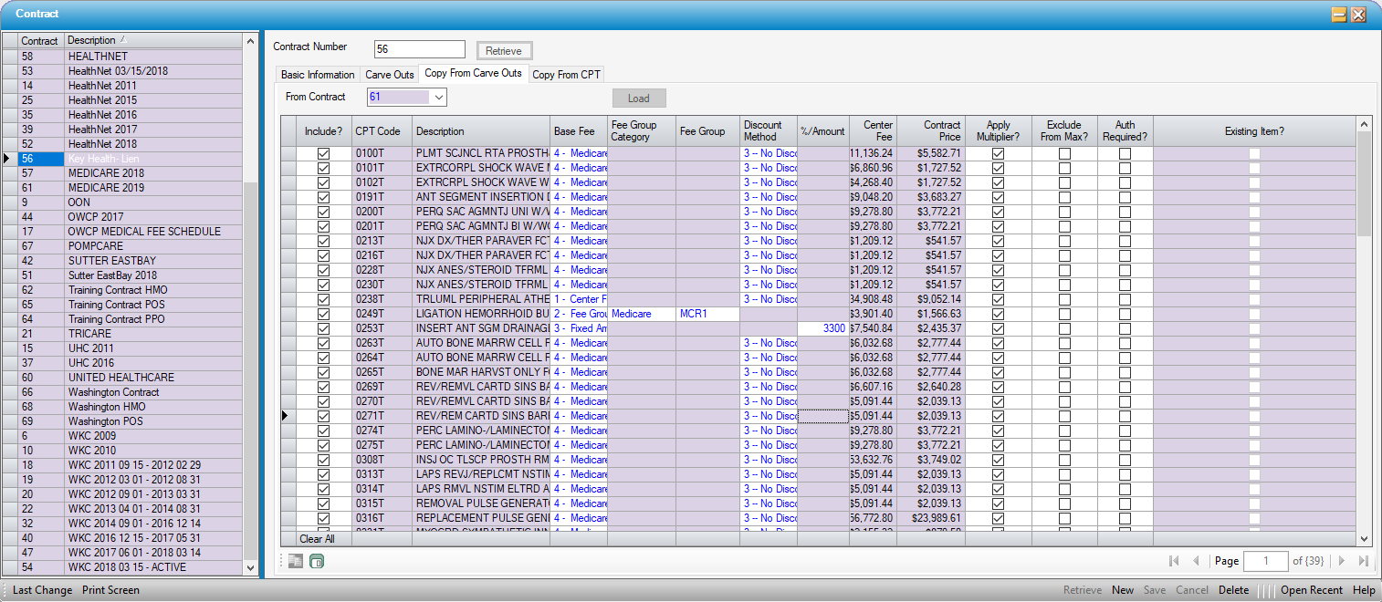 , or double click on desired Contract in the Contract grid on the left of the form. - Open Copy From Carve Outs tab.