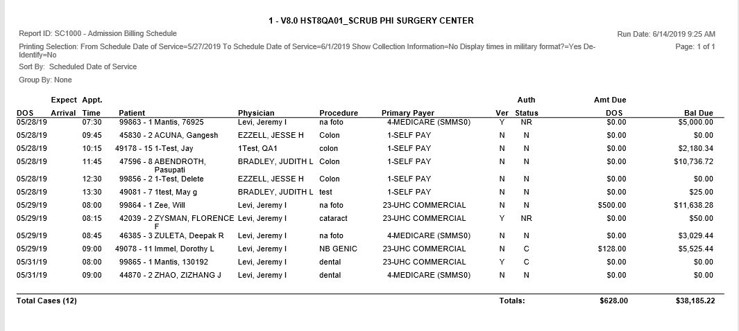 Consider running this report for next week's accouterments to determine if insurance has been verified and or authorized for the scheduled cases.